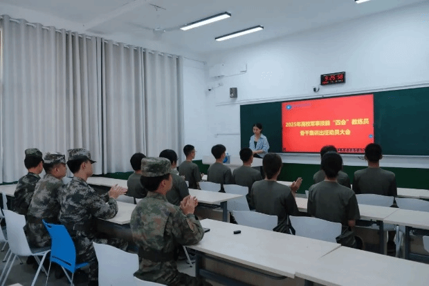 出征前,学生工作部、武装部专门召开出征动员大会为队员送行。会上,来自2024汉语言文学一班的文佳怡作为队员代表发言,她代表全体参训队员郑重承诺:“我们一定好好珍惜学校给予进修的宝贵机会,刻苦训练,全力以赴,不负学校的期望”。