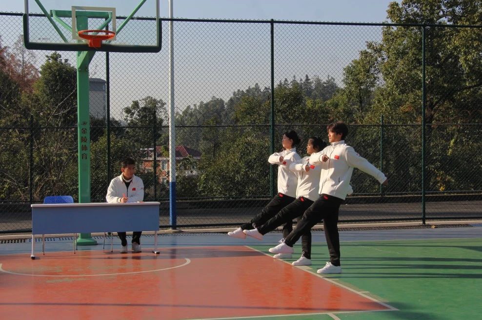 迎着清晨的第一缕阳光,预备队员于后山篮球场展开了紧张又严肃的队列考核。
