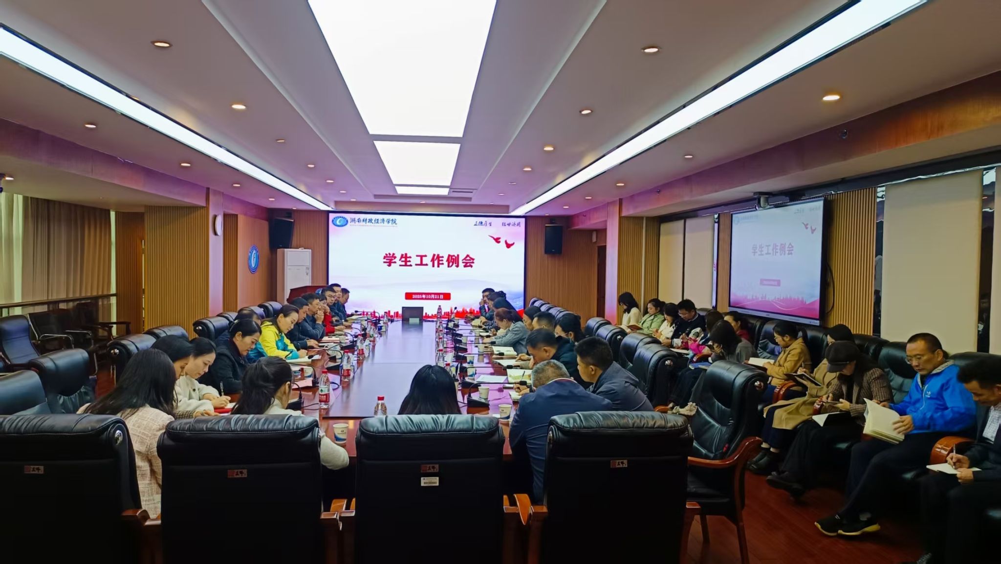 会上,学生工作部、保卫部、团委等职能部门就审核评估专家意见反馈整改、走读生与毕业生管理、教职工蹲点学生宿舍制度推进、评优评奖、心理健康教育、校运会组织、学生安全教育、第二课堂建设、美育教育实施及2025年下半年发展团员等工作进行了汇报与安排。