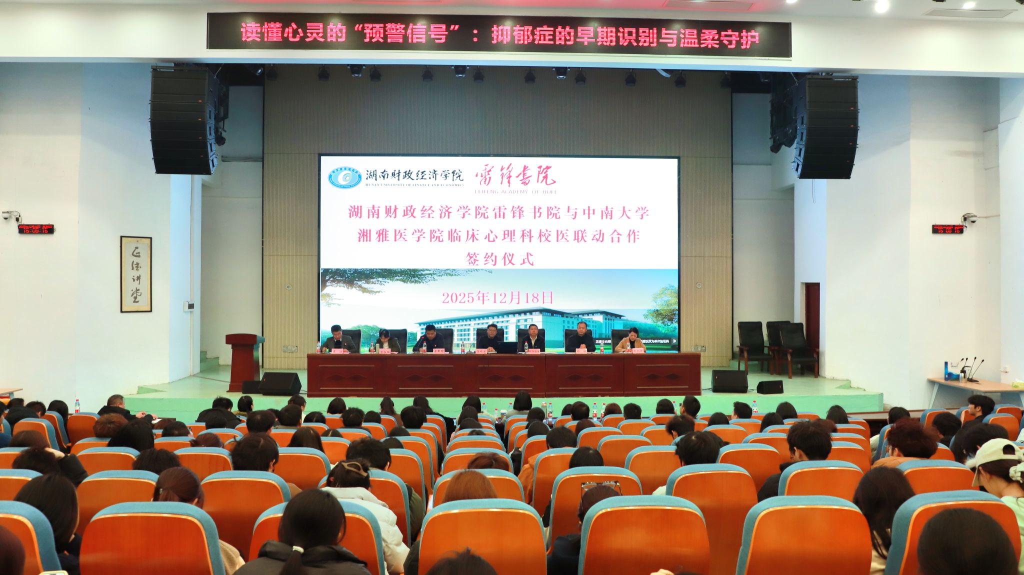 雷锋书院直属党支部书记余新明对中南大学湘雅医学院专家团队的到来表示热烈欢迎。他指出,雷锋书院作为学校育人模式改革的重要平台,始终将学生身心健康教育放在突出位置,视其为支撑学生全面发展的基础工程。他强调,此次与中南大学湘雅医学院临床心理科的合作,是双方秉持“以生为本、服务育人”理念,推动“资源共享、优势互补”的重要举措。未来,双方将在健康知识普及、急难病症绿色通道、师资培训与督导等方面展开深度合作,携手构建更加完善的学生健康保障体系,切实为学生的健康成长保驾护航。