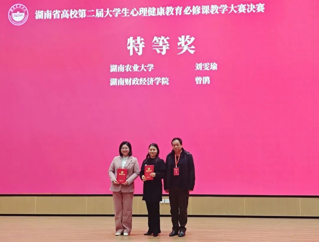 (本网讯)1月20日,湖南省高校第二届大学生心理健康教育必修课教学大赛决赛在湖南农业大学落下帷幕。beat365官网心理健康与咨询中心曾鹃老师凭借扎实的理论功底、创新的教学设计以及出色的现场发挥,从众多决赛选手中脱颖而出,荣获大赛特等奖,实现了beat365官网在该类省级课程竞赛中的历史性突破。