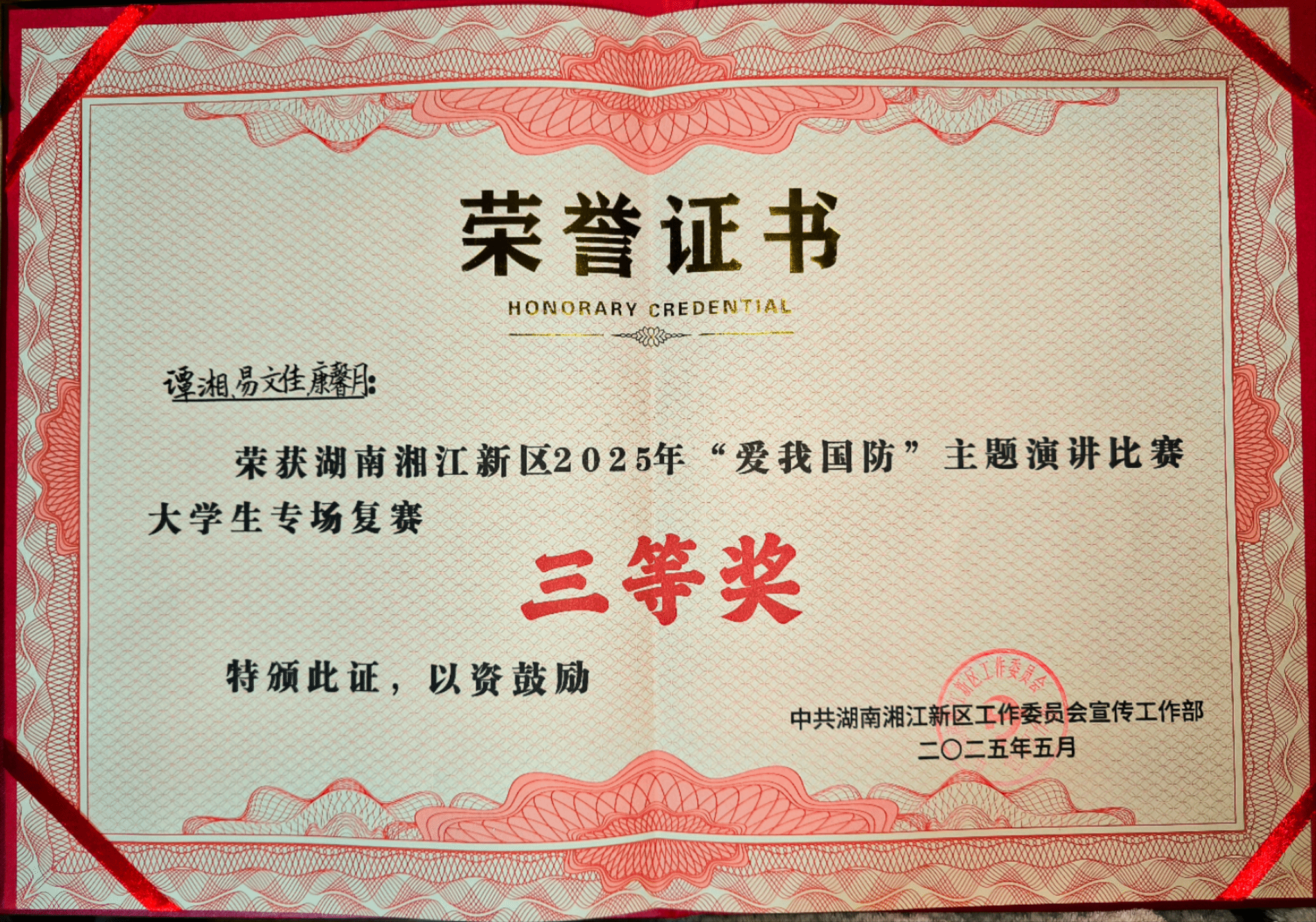 (本网讯)近日,湖南省湘江新区2025年“爱我国防”演讲比赛大学生专场在湘江新区文化馆圆满落幕,beat365官网共推送两组参赛队伍(选手)参赛。