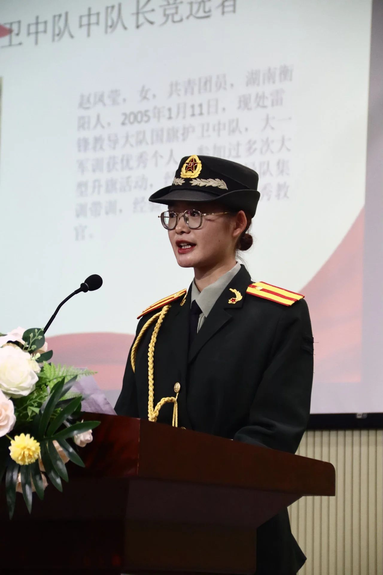 第二届雷锋教导队大队长王艺翔作为代表上台发言,他对学校领导、老师对队伍的关心和爱护,对全体队员的鼎力支持表示由衷的感谢,总结了一年以来的工作,并表达了对雷锋教导队的美好祝福。