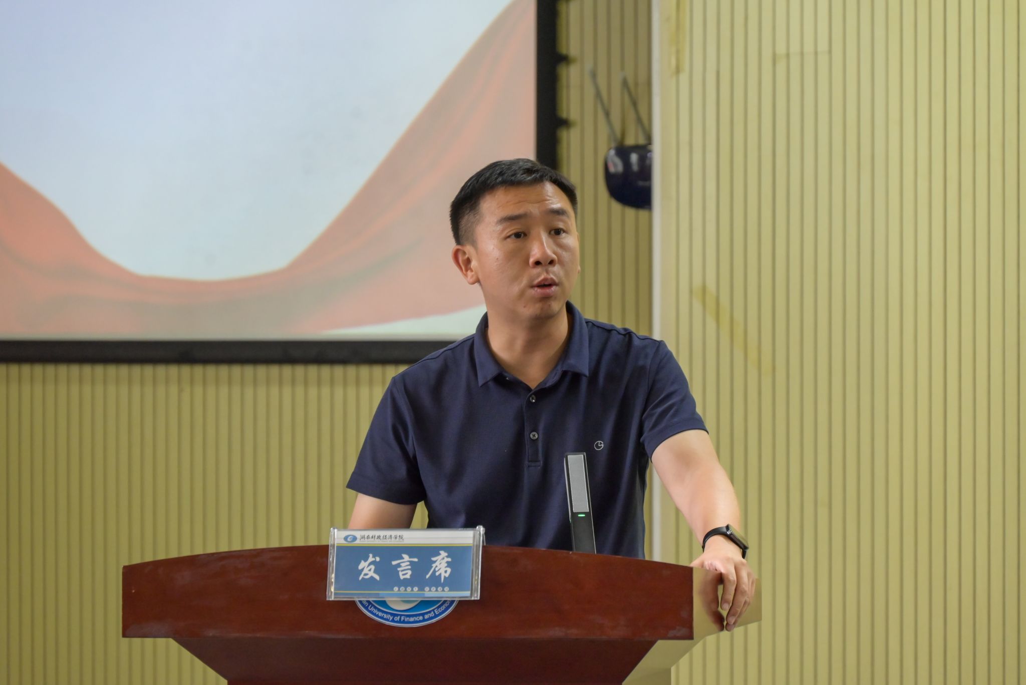 (图为校团委书记刘天浩为会议做总结发言 钟博康摄)