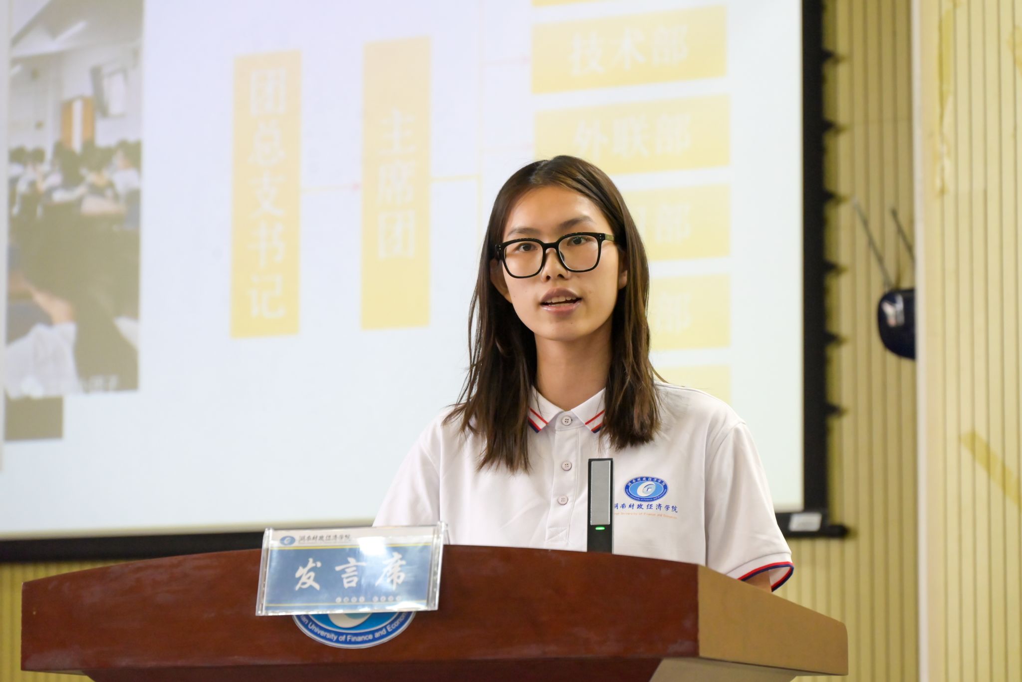 (图为校学生会主席团成员进行述职汇报 钟博康摄)