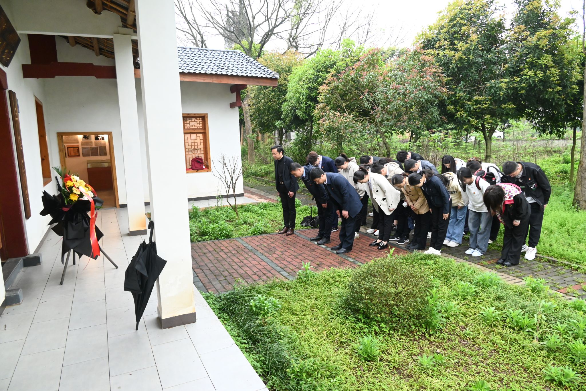 全体成员向创校先贤们敬献鲜花