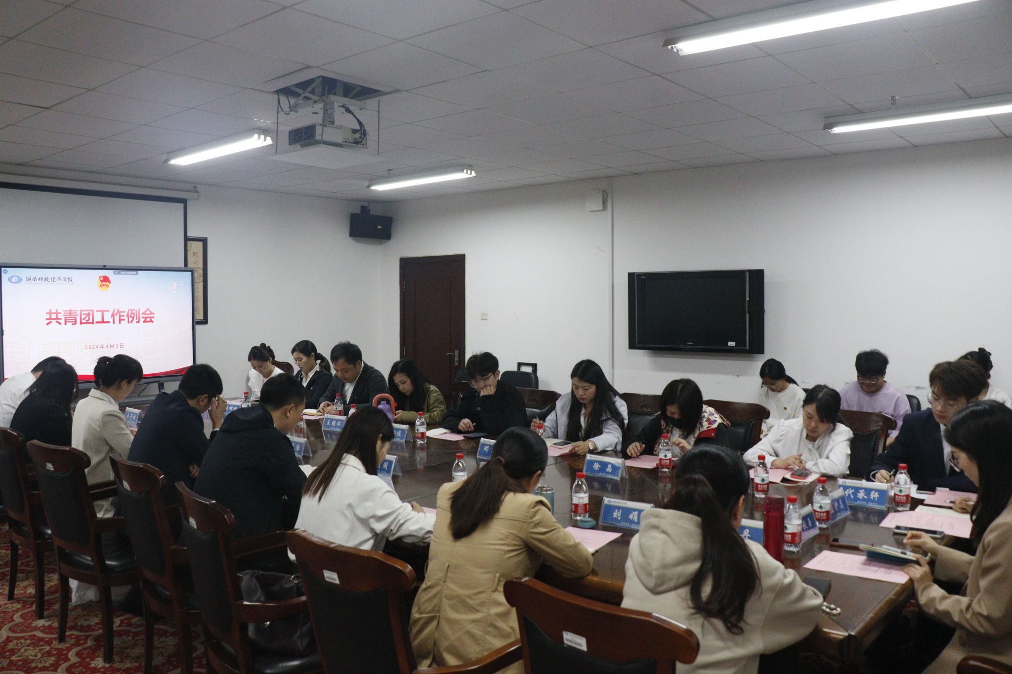 (本网讯)4月3日,学校2024年第二次共青团工作例会在办公楼515会议室召开。校团委书记刘天浩主持会议,校团委全体老师、各二级团组织书记以及校级组织学生干部代表齐聚一堂,共同谋划共青团工作新发展。