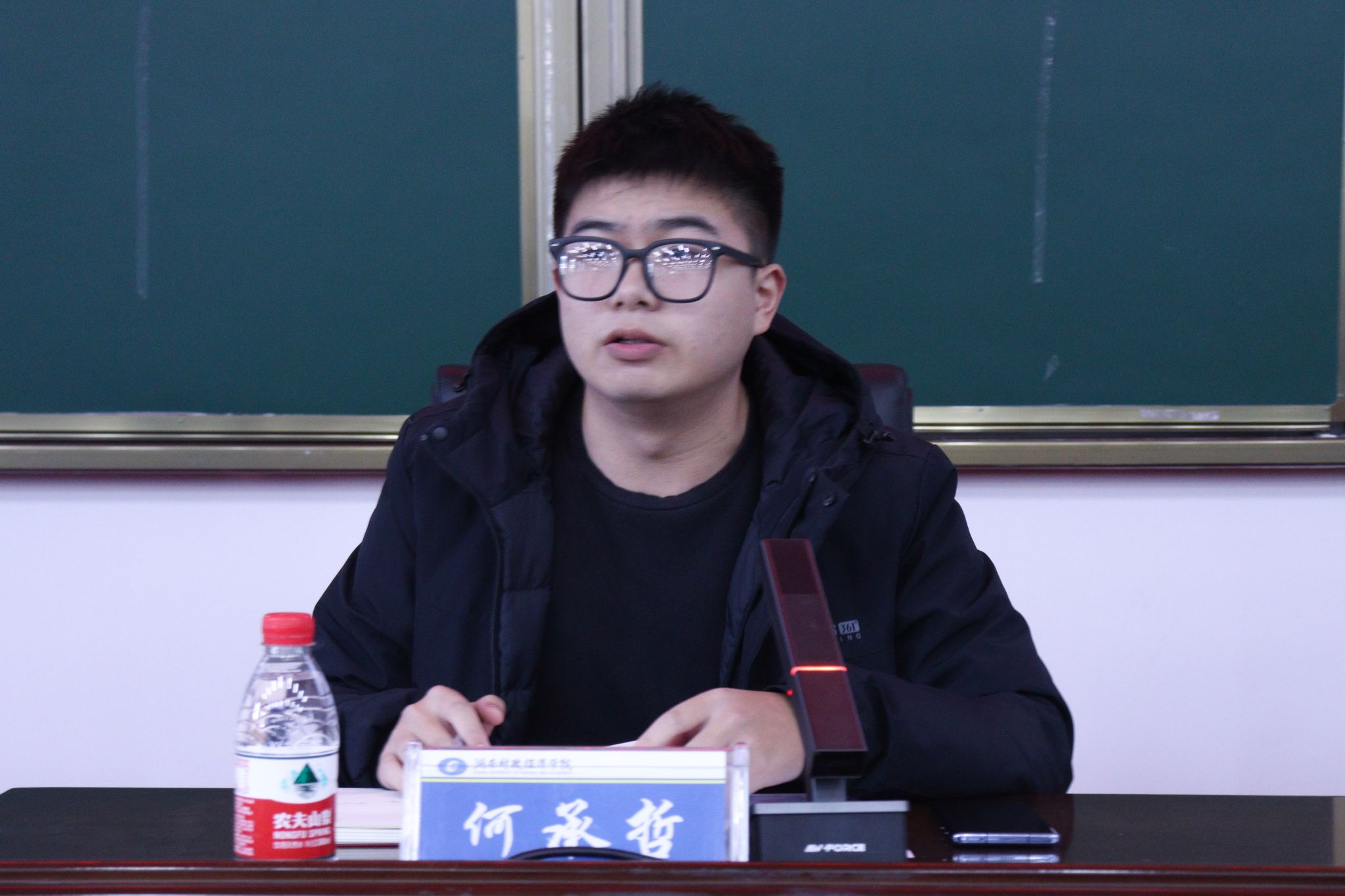 (图为校学生会执行主席何承哲传达2023湖南省青马工程高校班相关工作指示精神)