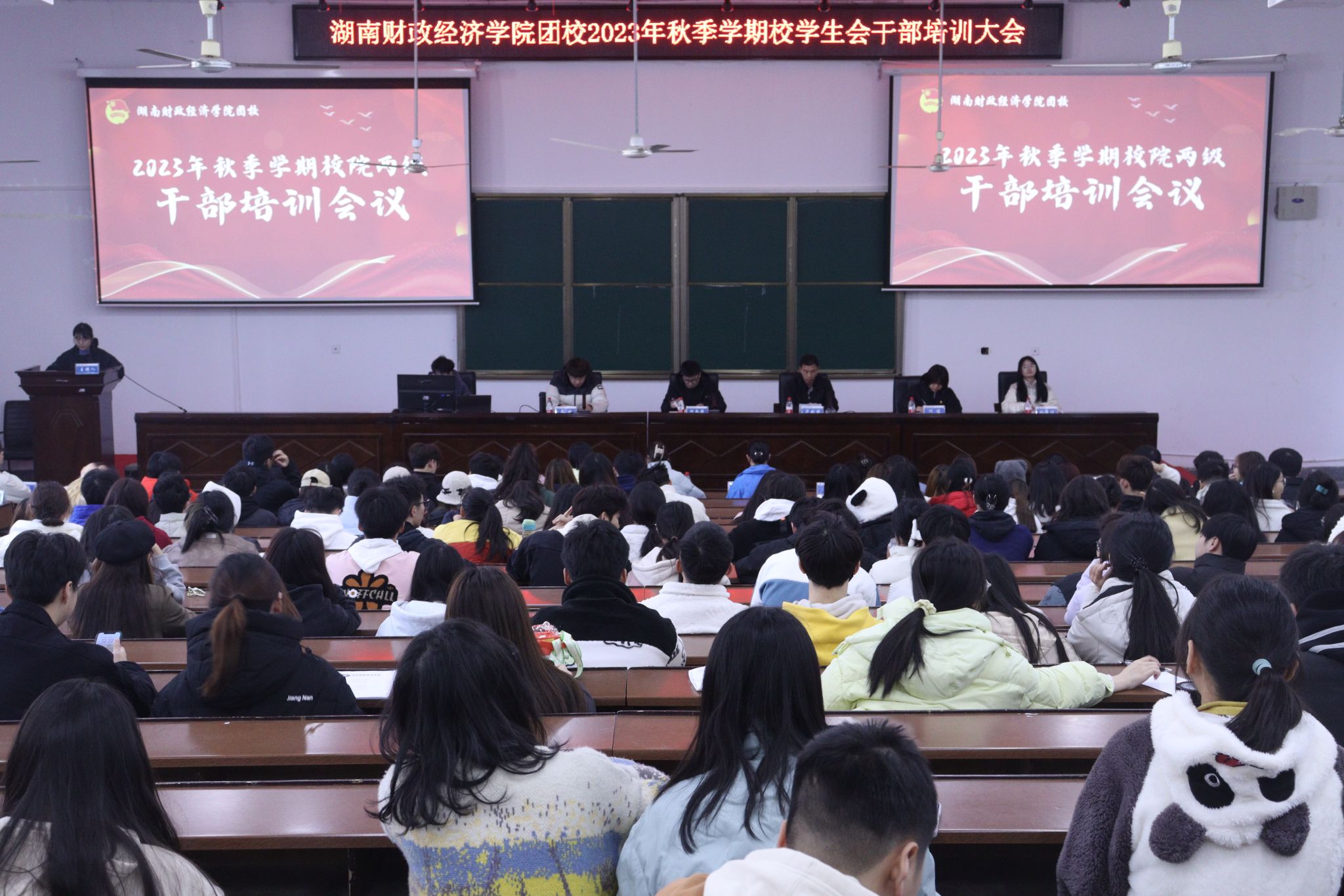 挺膺担当谱新篇,砥砺奋斗共前行。本次干部培训会议让校院两级学生干部对自身责任和使命担当有了更加深入的了解,广大学生干部将在校党委的正确领导和校团委的悉心指导下,严格要求自身,恪守学生本分,努力学习科学文化知识,理论与实践并重,营造良好学术氛围,涵养清风正气,激发湖财青年热情、无私、奋斗、坚毅、奉献的精神品质,推动湖财学子学思想、强党性、重实践、建新功。