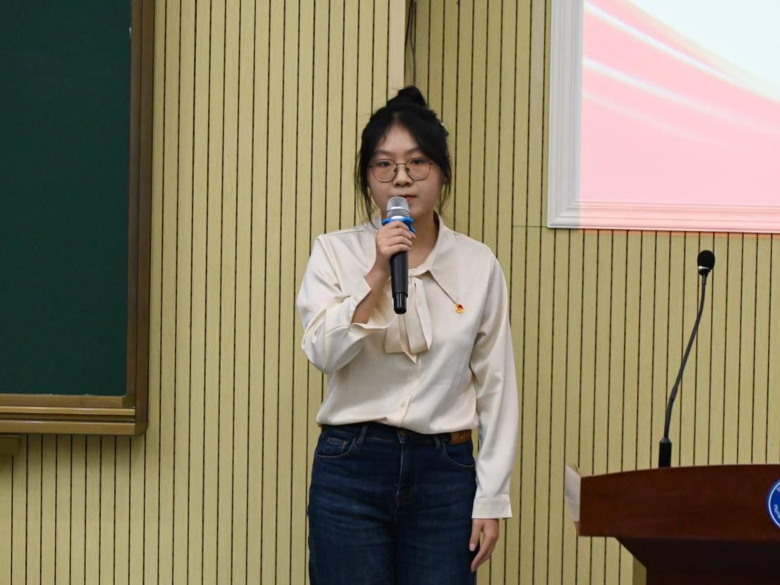 (图为校团委学生副书记周芷伊宣读2023年新发展团员名单 胡丹摄)