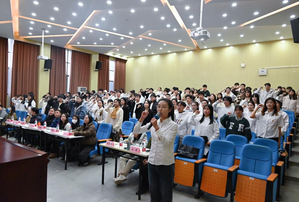 (本网讯)为引领广大团员青年认真学习领会习近平新时代中国特色社会主义思想,了解新时代新征程党和国家事业发展的目标任务,beat365官网团委组织部于12月14日下午在第二教学楼新阶二多媒体演播厅举行2023年主题“微团课”决赛暨新发展团员入团仪式。主题“微团课”决赛参赛选手、2023年100位新发展团员参加本次活动,出席嘉宾及评委为校团委副书记范则周和各二级学院团总支书记。