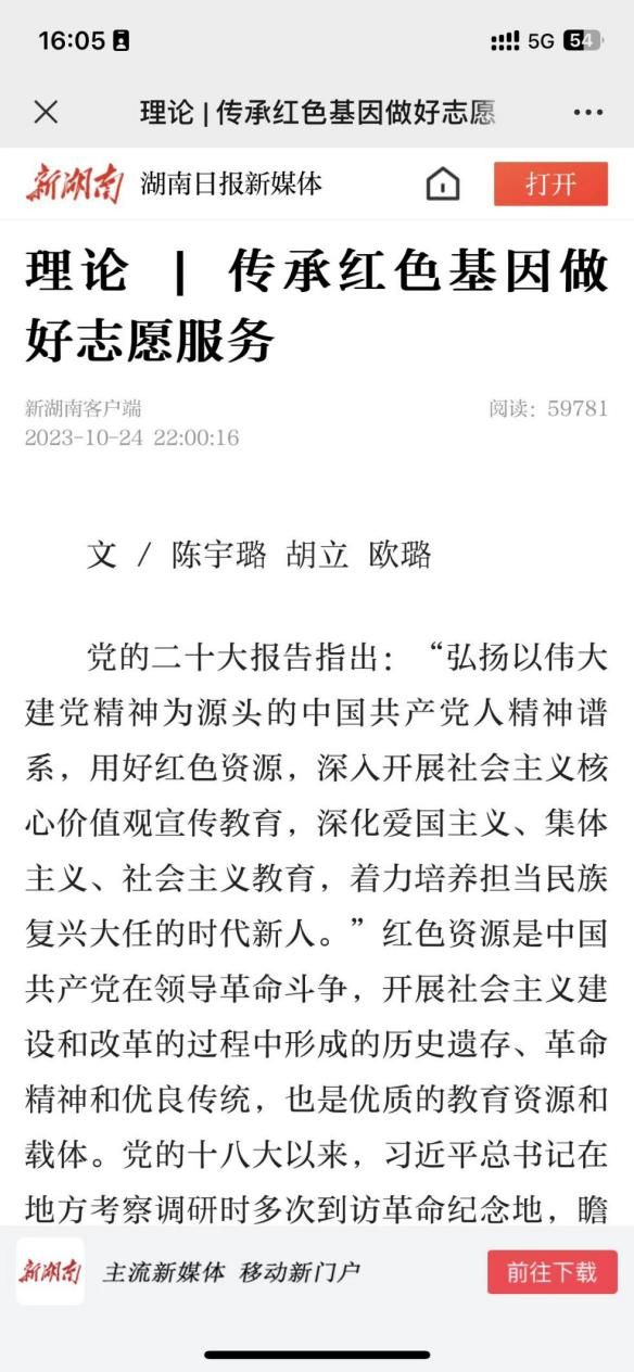 在湖南雷锋纪念馆,她带领团队深入了解雷锋故事,生动讲述,传承红色基因。她的调研报告《传承红色基因,做好志愿服务》在新湖南上发表,收获数万点击。同时,她还带领团队支援乡村小学,创作《雷锋精神代代传,追光青年谱新章》,荣获挑战杯湖南省二等奖。