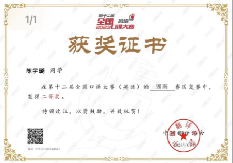 长沙铜官窑、醴陵陶瓷博物馆,都有她志愿服务的身影。她中英双语讲述瓷器历史,渴望助力瓷器走向世界,作品屡获大奖。中非经贸博览会、杭州亚运会,她的专业与热情同样闪耀。她不仅锻炼了社交能力,更增强了专业知识,荣获“全国口译大赛”湖南省二等奖。