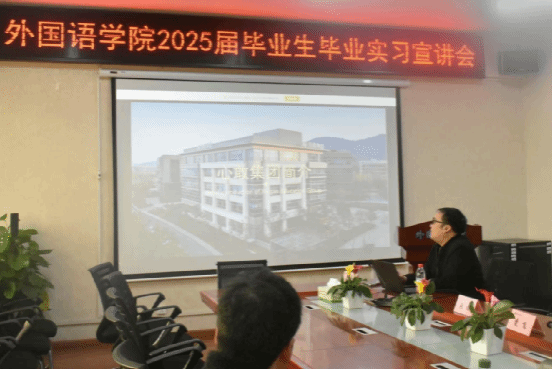 为切实做好2025届毕业生就业服务工作,拓宽外院学子的实习就业渠道,12月11日下午2:30,外国语学院邀请用人单位进校,在办公楼315会议室举行了实习就业宣讲会。本次宣讲会邀请到湖南心敢教育集团和东莞在一起电子商务有限公司2家单位参与,外国语学院党委书记凌飞、党委副书记张鹏、副院长汪小英、学工办主任肖叶枝、毕业班辅导员及2025届毕业生参加会议。