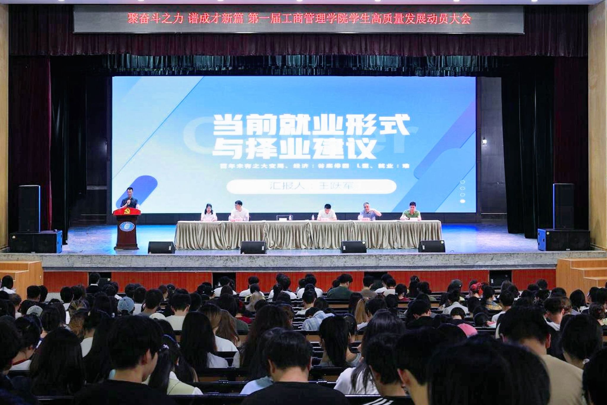 王跃军深刻剖析了“百年未有之大变局”下严峻的就业形势(L型经济态势、毕业生规模攀升),殷切勉励学子将个人发展融入国家战略大局,殷切勉励学子将个人发展融入国家战略大局,早规划、早行动,实现从“被动择业”到“主动创变”的跃升。