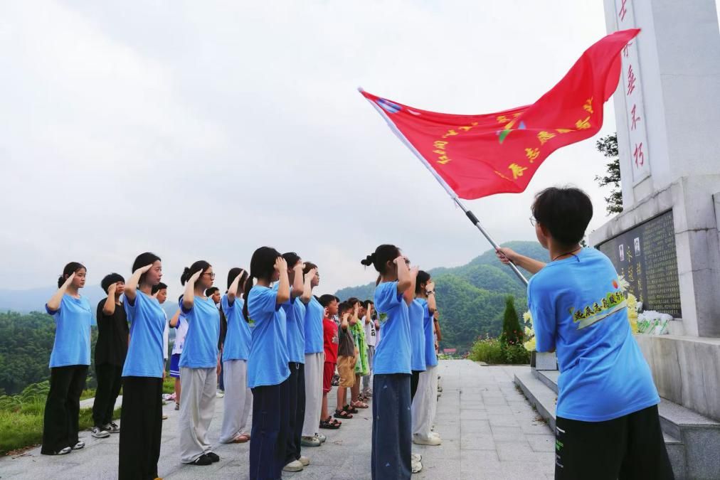 青山巍巍,松柏苍翠。志愿者带领三十余名龙塘湾村的孩子在张昆弟烈士陵前整齐列队,面向高耸的纪念碑肃立默哀。微风拂过,纪念碑上的文字愈发清晰,仿佛在静静诉说着张昆弟青年时期追寻真理、投身革命洪流的峥嵘岁月。“继承先烈遗志,弘扬革命精神,好好学习,报效祖国!”铿锵有力的宣誓声穿透晨雾,在张昆弟烈士陵园的苍松翠柏间久久回荡。