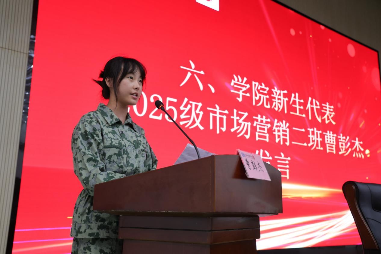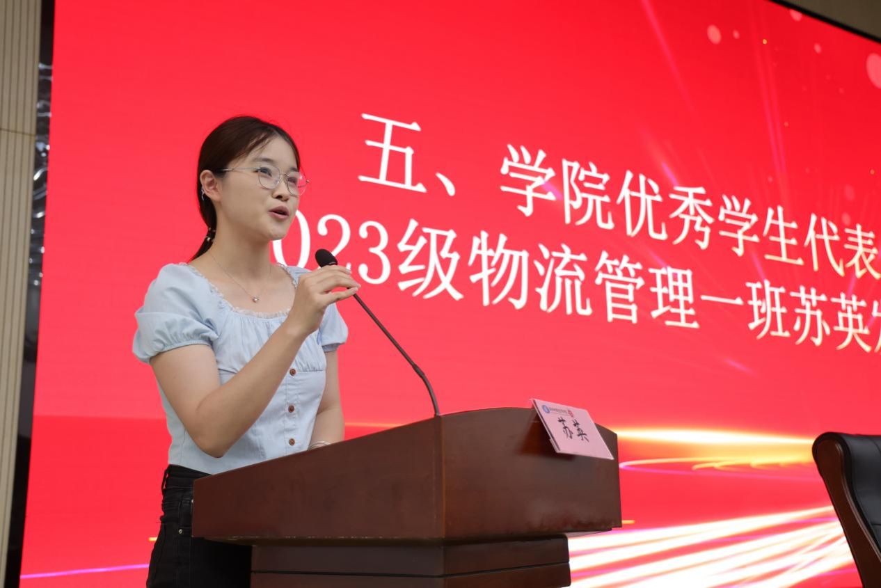 在校学生代表李妍、苏英、彭胜利分别从专业学习方法、学科竞赛备赛技巧、社会实践参与路径等角度分享心得,用同龄人视角为新生答疑解惑。新生代表曹彭杰在发言中表达了对大学生活的憧憬,并表示会以优秀学长学姐为榜样,不辜负学院的培养与期望。
