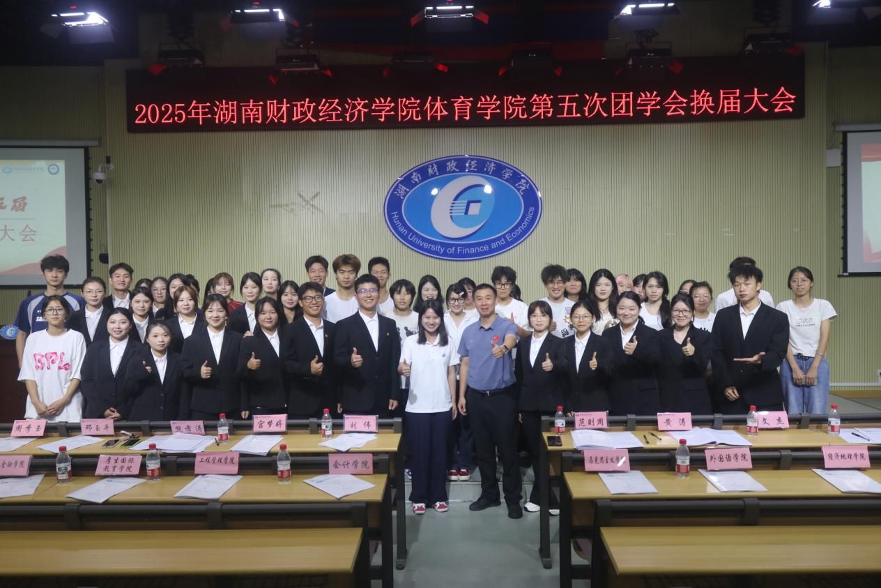 大会在全体参会人员的合影留念中圆满落幕。此次换届大会不仅完成了体育学院团学会工作的顺利交接,更凝聚了共识、明确了方向。相信在新一届团学会的带领下,体育学院将持续丰富校园生活、助力学生成长,为学院高质量发展书写更加精彩的青春篇章!