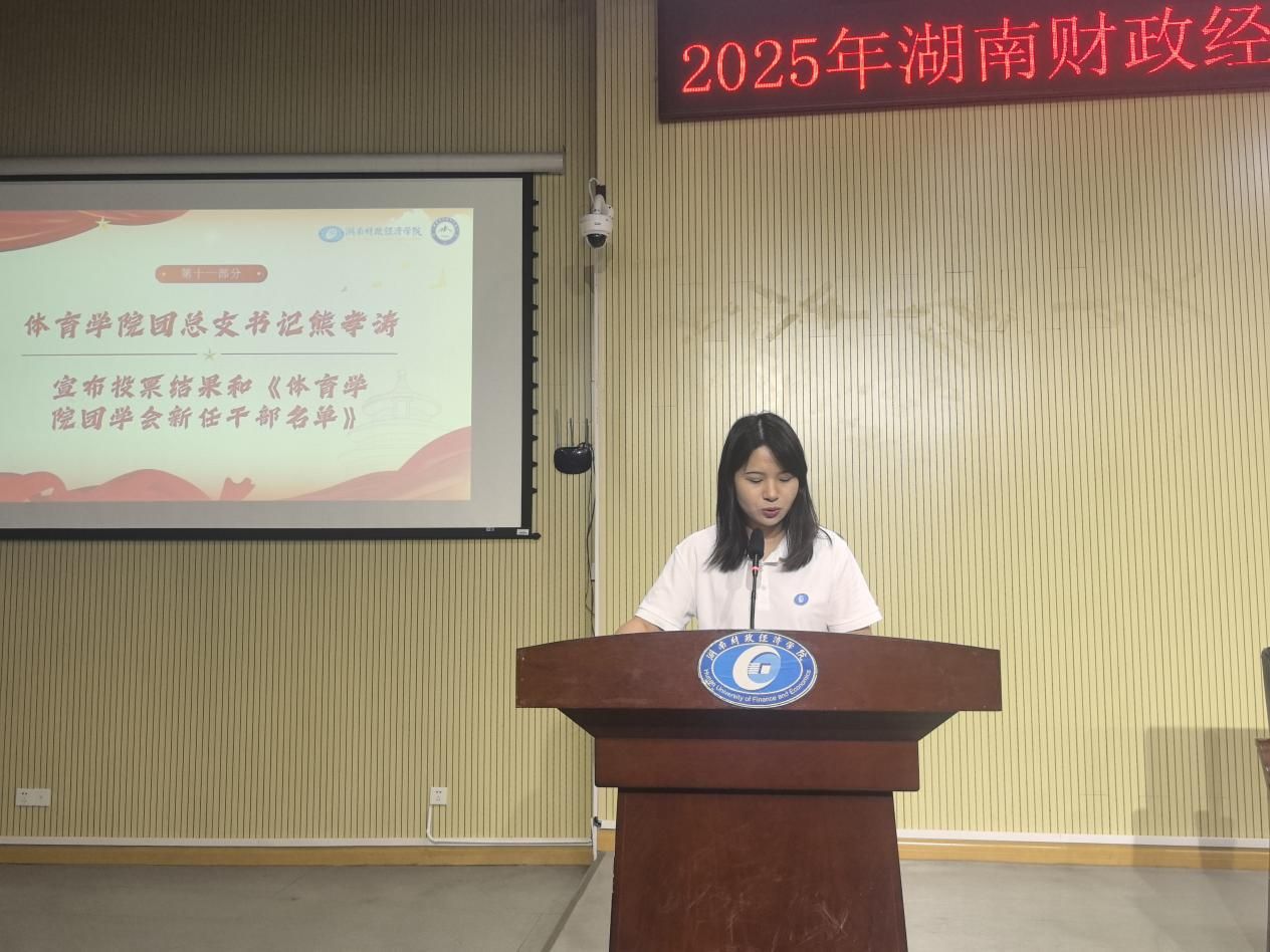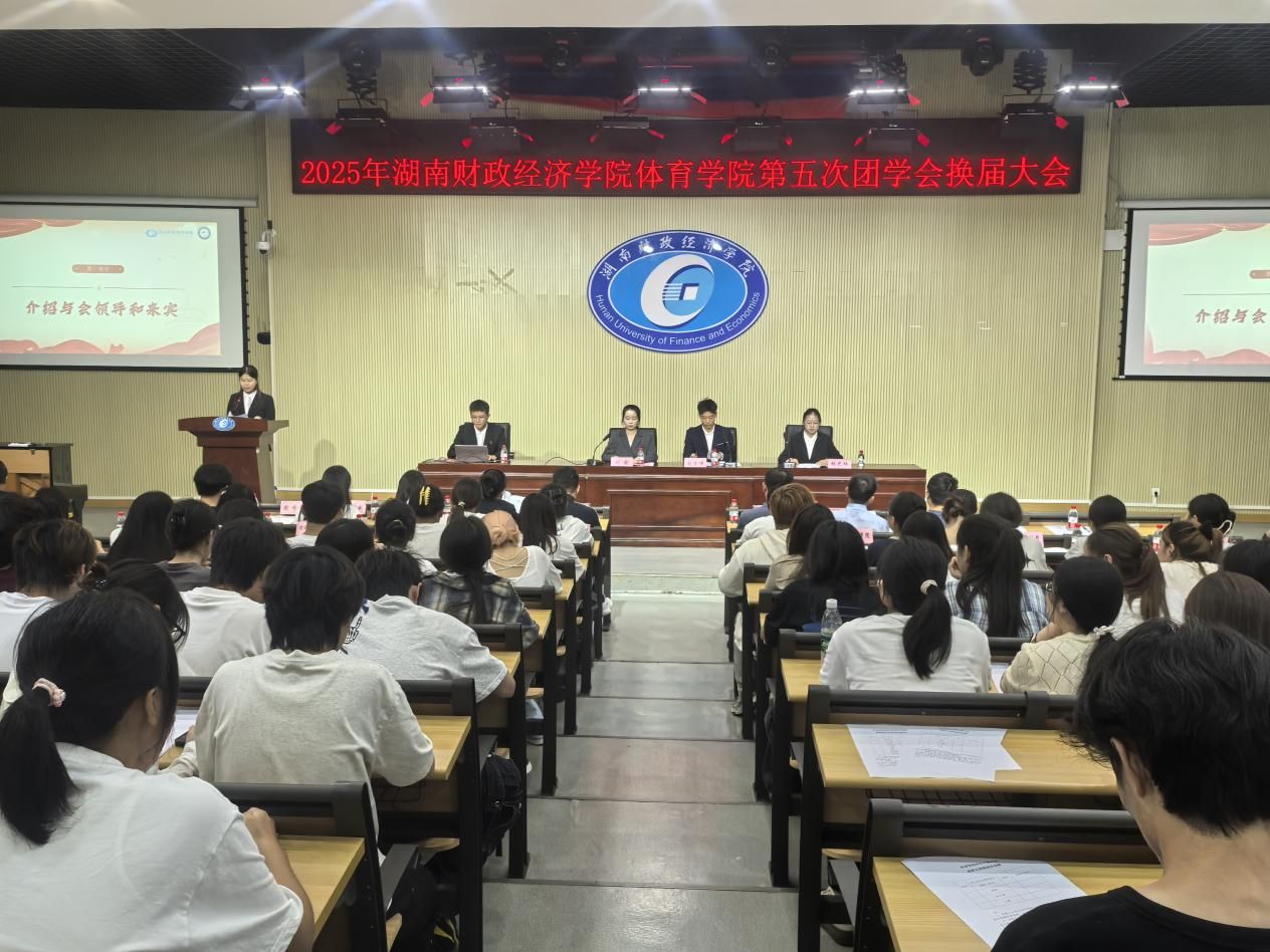 9月28日下午,体育学院于2J03教室成功召开第五次团学会换届大会,体育学院院长刘伟、直属党支部副书记范则周、副院长宫梦婷、学工办主任黄涛、团总支书记熊孝涛、体育经济与管理系主任文杰、辅导员邓玉平以及校学生代表、团学会全体成员、各班学生代表等出席本次大会。24级体育经济与管理二班陈智红担任会议主持人。