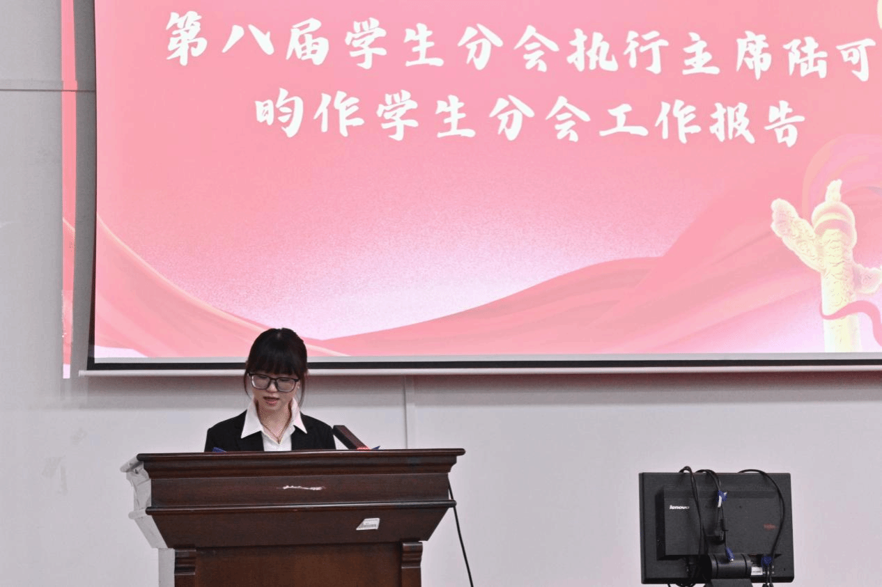 会上,第八届团总支学生副书记黄彩颜、学生分会执行主席陆可昀分别作工作报告,全面回顾思想引领、权益维护等领域工作成效与不足。向占宏书记等领导为第八届团学干部颁授聘书并表彰优秀个人,现场掌声雷动。