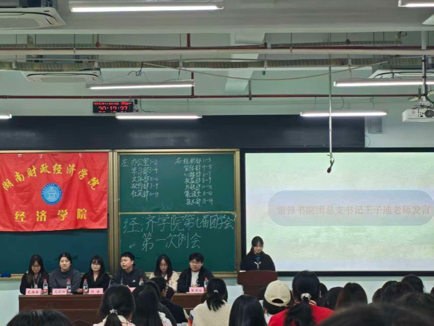 11月11日晚,经济学院第七届团总支学生会(下面简称“团学会”)第一次全体例会在雷锋书院L1115教室召开。本次会议由办公室副主任周元英主持,经济学院团总支书记宋赛男、雷锋书院团总支书记王子迪及第七届团学会全体干部、干事出席。