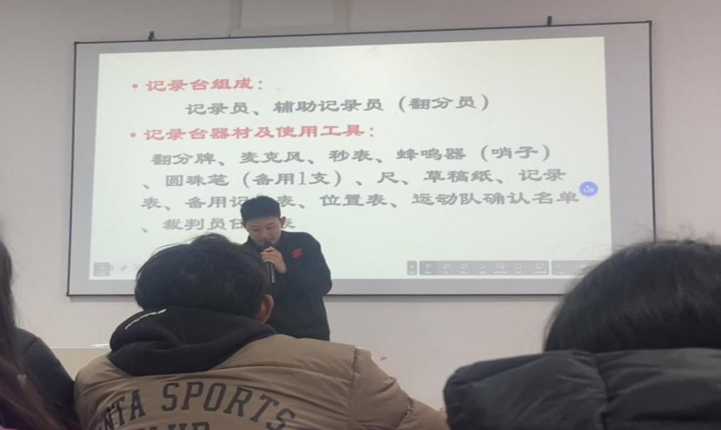 课堂上,周砥坚老师系统讲授气排球竞赛规则与裁判法,深入解读条文要义,并结合执裁经历分享典型案例,以场景化教学破解判罚难点,让抽象知识直观易懂;毕恩梅老师聚焦裁判实操核心,从手势幅度、角度定位到旗示规范与逻辑衔接,逐项精细化示范,手把手校准动作细节,助力学员掌握执裁礼仪与实操要领;杜琼老师深耕记录台实务,拆解人员分工、器材操作、数据记录等关键环节,结合赛事实例强调工作严谨性,让学员明晰操作核心逻辑。