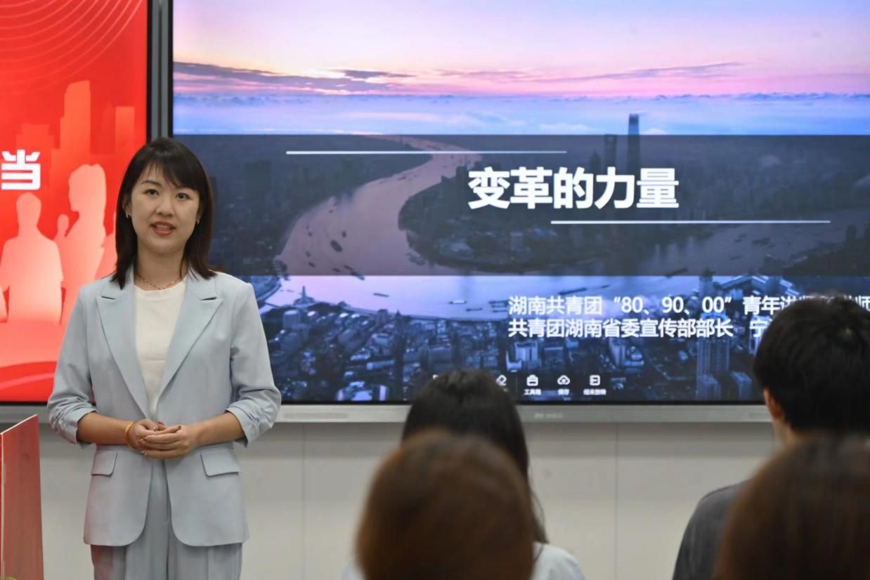 在这个日新月异的时代,变革是永恒的主题,是推动社会进步的不竭动力。新时代背景下应当如何科学诠释变革的力量,青年又应当如何在变革中勇立潮头、乘风破浪?湖南共青团“80、90、00”青年讲师团讲师、团省委宣传部部长宁涛以《变革的力量》为主题,开启了此次宣讲。宁涛用生动的语言、亲身的经历,深刻揭示了变革的深远意义,深入剖析了青年在时代变革中的责任与担当,向大家充分展示了变革的磅礴伟力。她鼓励青年人要勇于拥抱变化,用自己的努力推动中国式现代化进程。