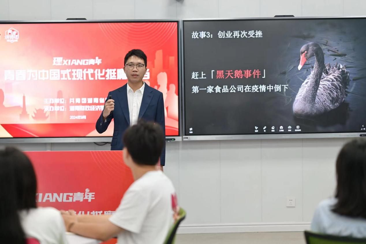 (本网讯)2024年9月24日上午,湖南共青团“理XIANG青年”宣讲活动在学校第二教学楼举行。3名湖湘青年登上“理XIANG青年”讲台,讲述青春为中国式现代化挺膺担当的奋斗故事,激励青年学子们勇担社会责任,为强国建设和民族复兴贡献青春力量。