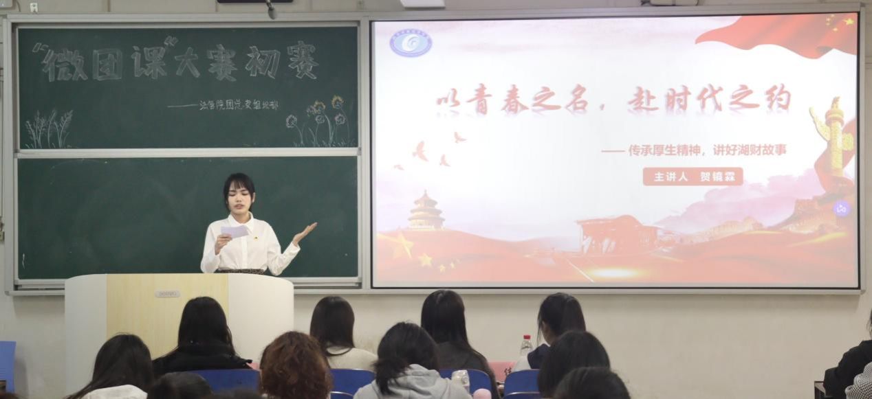 活动伊始,微团课首先以一段中国共产党的峥嵘史进行导入,随后参赛选手聚焦“两会”、青春力量、雷锋精神、哪吒精神,以自信大方的姿态、富有感染力的语言,结合精心制作的课件,展开讲述 ,充分展现了湖财青年积极向上的精神风貌和对共青团的深刻理解。现场掌声此起彼伏,互动环节中同学们踊跃发言,将气氛推向高潮。