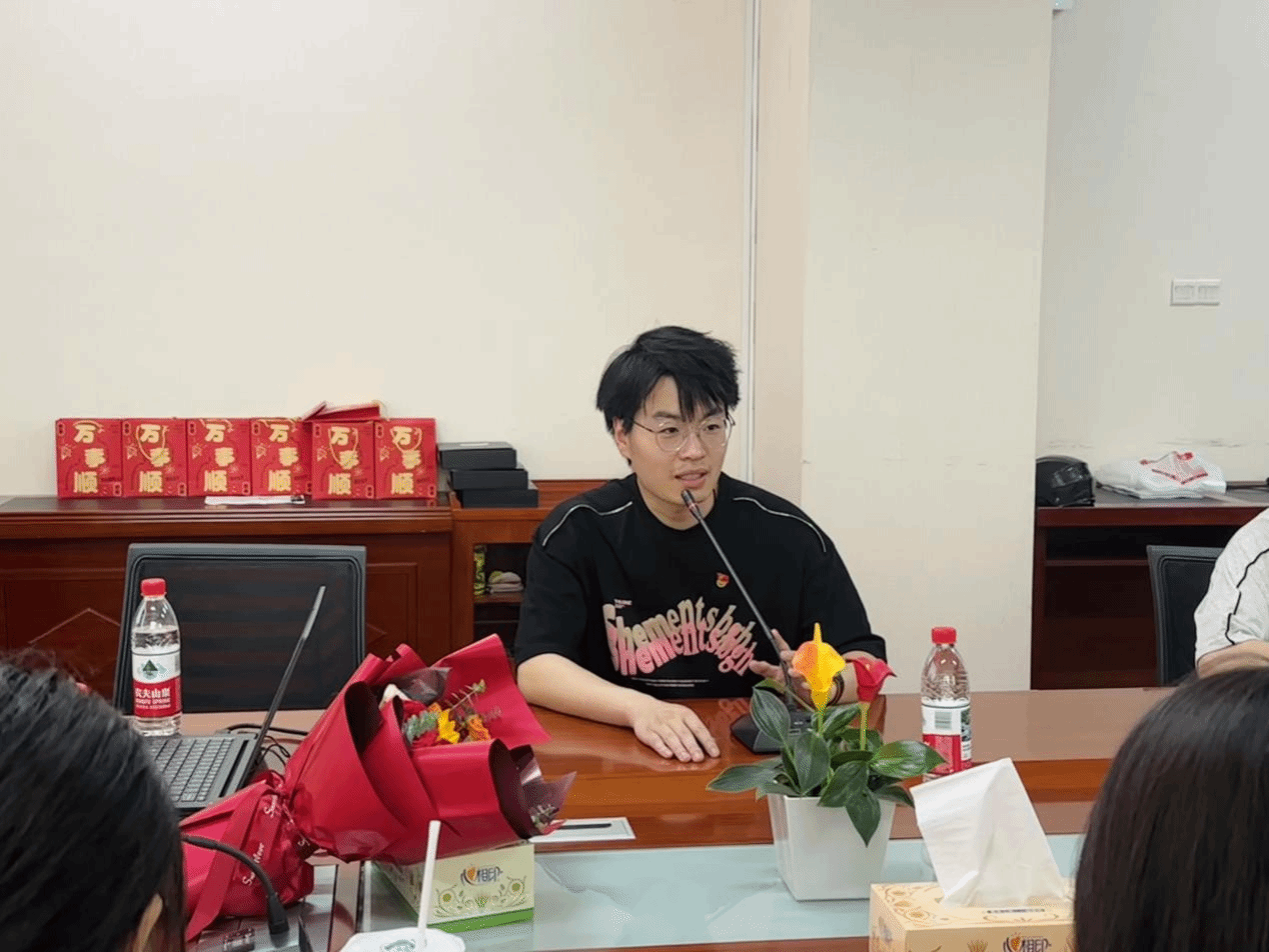 会议伊始,代承轩作开场与嘉宾介绍。随后,张鹏简要介绍了石磊老同志的参军入伍及退伍后的工作经历,她同时强调:老党员、老同志们的身上承载着厚重红色记忆与坚定理想信念,希望同学们认真聆听,用心感悟,从故事中汲取力量,传承红色基因,让革命先辈的精神在新时代焕发光彩,全体同学要将红色精神转化为学习、工作的动力,为推动学校各项事业发展贡献力量。