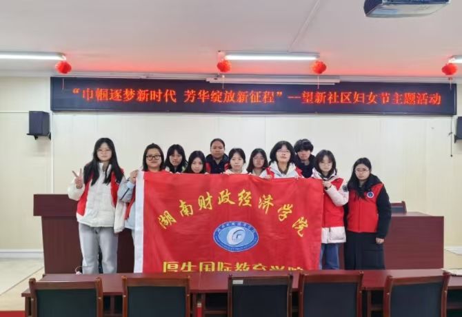 2025年3月7日,为迎接即将到来的妇女节,厚生国际教育学院厚生志愿服务团携手学院共建单位——望新社区,于其社区新时代文明实践站共同开展了以“巾帼逐梦新时代,芳华绽放新征程”为题的妇女节主题活动。活动当天,志愿者们与社区工作人员一起组织并教授社区老年居民制作金香花,表达了对社区老年居民的美好祝愿。