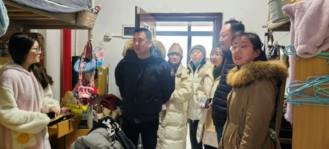 学院党委书记孙光、党委副书记唐雄伟亲自带队,深入每一栋学生宿舍楼,与同学生们亲切交谈,了解学生的具体情况;细致查看了宿舍内部卫生、安全设施等情况。特别强调了宿舍安全的重要性,要求同学们注意用电安全,不使用违规电器,确保宿舍的安全与整洁,并鼓励同学们要相互关心、相互帮助,共同营造一个温馨、和谐的宿舍环境。