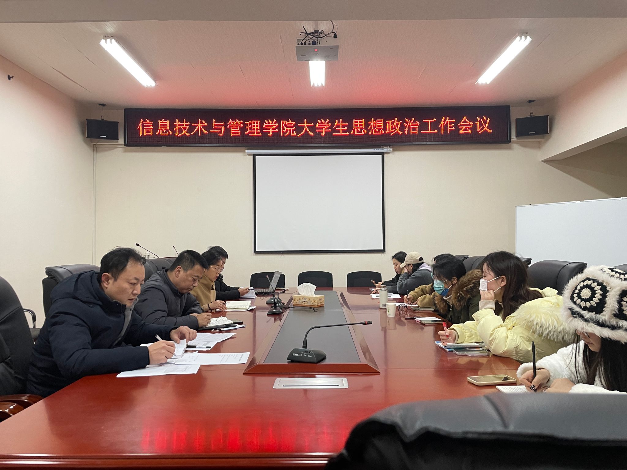 (本网讯)1月2日,信息技术与管理学院在办公楼315会议室召开大学生思想政治教育工作会议。会议由院党委副书记唐雄伟主持,党委书记孙光及全体专兼职辅导员参加了此次会议。