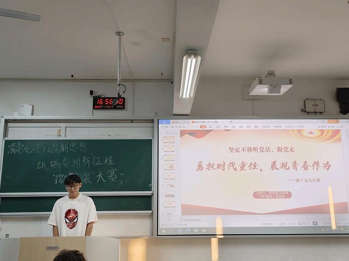 (本网讯)11月21日下午,信息技术与管理学院在L3405教室成功举办了以“凝心铸魂新思想,砥砺奋进新征程”为主题的微团课选拔赛。此次比赛旨在引导广大青年学子深入学习宣传贯彻党的二十大精神和习近平总书记关于青年的重要论述,进一步夯实基层团组织建设,传承红色基因,赓续红色血脉。