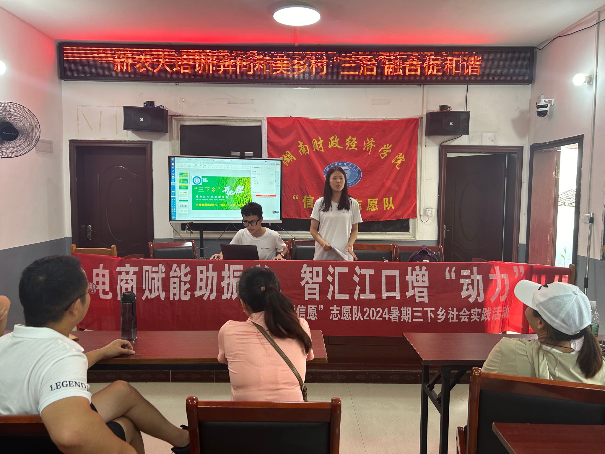3日下午,“信愿”志愿队运用专业所学知识与技能,在江口村委会组织了一场集中培训。培训内容包括短视频制作与营销、产品描述撰写、直播技巧、电商平台运营等实用技能。志愿队员手把手教村民操作手机和电脑,并分享电商实践经验。