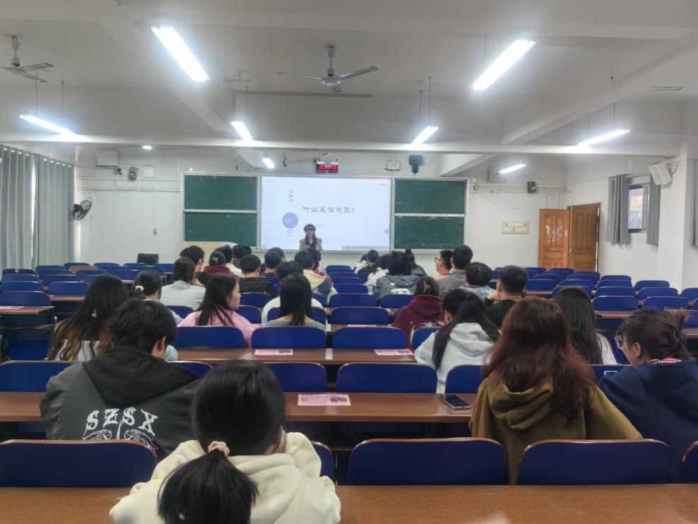 (本网讯)为了提升学院心理信息员的专业素养和工作能力,更好地发挥他们在学院心理健康教育工作中的朋辈辅导作用,10月23日,信息技术与管理学院在三教学楼3110教室开展主题为“守护心灵绿洲,让爱更有温度”的心理信息员培训。此次培训由学院学工办副主任、心理专干陈慧主讲,学院团学会心理健康部所有成员,2023级、2024级各班级心理委员参加培训。