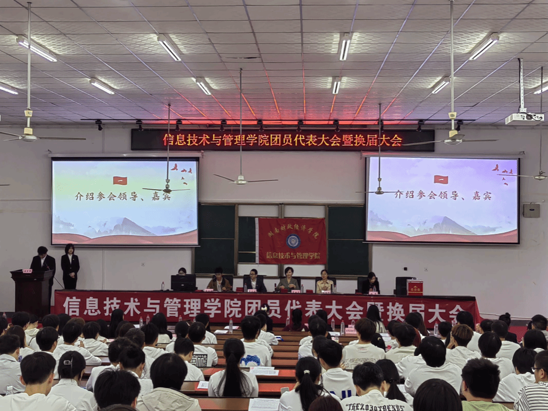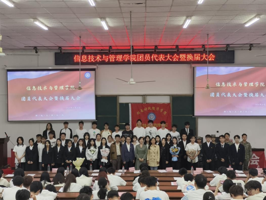 10月30日下午两点,信息技术与管理学院于第二教学楼2J01学术报告厅隆重举办了第七届团员、学生代表大会暨第七届团总支、学生会换届选举大会。信息技术与管理学院党委书记李映泉、党委副书记唐雄伟、副院长范国兵、学工办副主任陈慧、团总支书记李雨希出席会议,团总支、学生会全体成员及各年级学生代表参加会议,大会由学生干部孙海彬和蒋逸心共同主持。