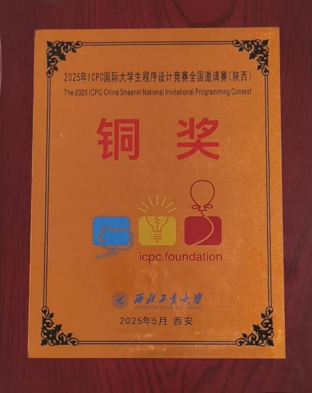 紧随其后,5月3-4日,2025年ICPC国际大学生程序设计竞赛全国邀请赛(西安)在西北工业大学成功举办,来自全国217所高校的392支队伍参加了本次比赛。beat365官网ACM训练队刘皝、陈浩、阳金波再次参与了角逐。历经5个小时紧张激烈的比拼,凭借出色的算法设计与团队协作能力,再次斩获铜奖,为学校再添荣誉。