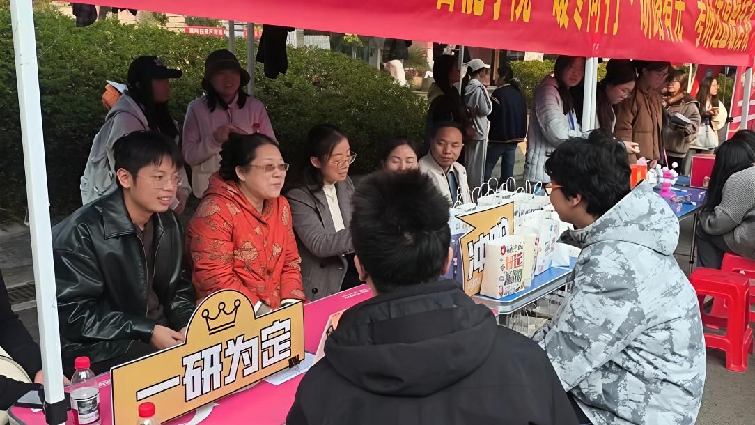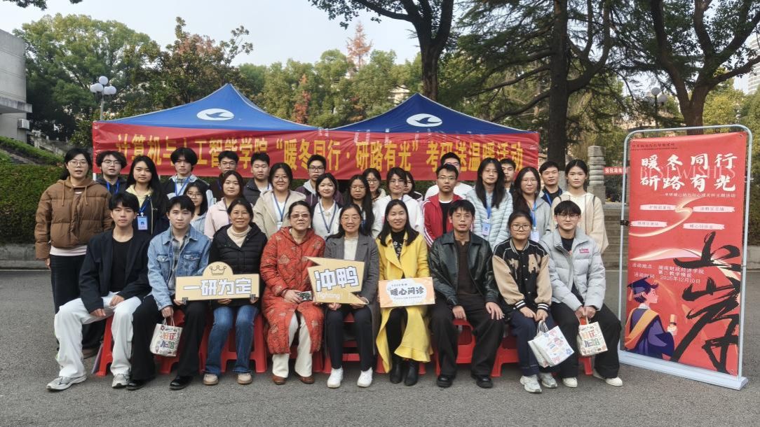 为帮助考研学子缓解压力、坚定信心,以最佳状态迎接考试,12月10日,计算机与人工智能学院在主校区大礼堂前举办了“暖冬同行 研路有光”考研心理调适暨考研慰问活动。学院党委副书记唐雄伟、学工办副主任陈慧、团总支书记李雨希、毕业班辅导员、教工党支部党员代表及团学会干部参加活动,共同为备战学子加油鼓劲。