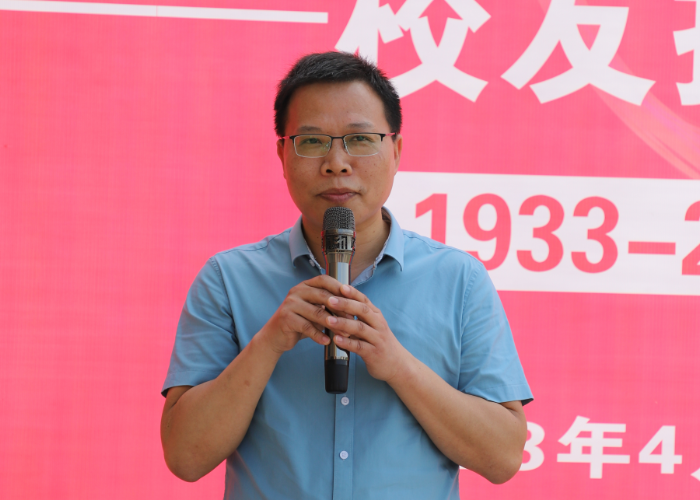 龚恒军校友班主任曹松林老师介绍了他在校期间情况,向龚恒军校友在办学90周年之际回校捐赠表示欢迎和感谢。