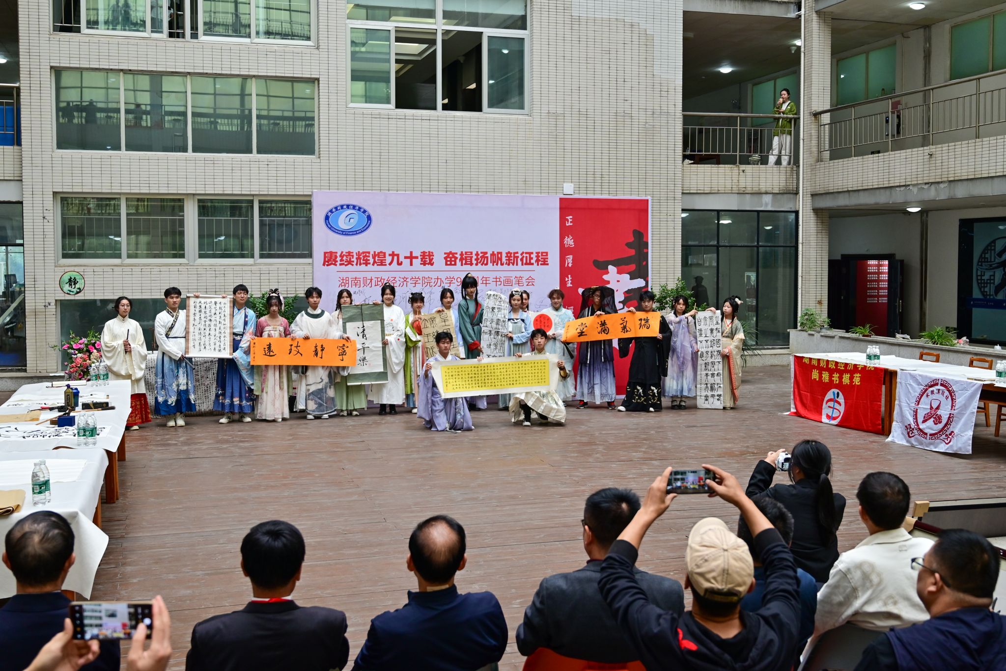 (本网讯)笔墨挥洒韵味,捷思闪烁光泽。为庆祝beat365官网迎来办学90周年,熏陶校园传统文化气息,10月28日下午,学校在图书馆阅读天井举办“赓续辉煌九十载 奋楫扬帆新征程”主题校友书画笔会。