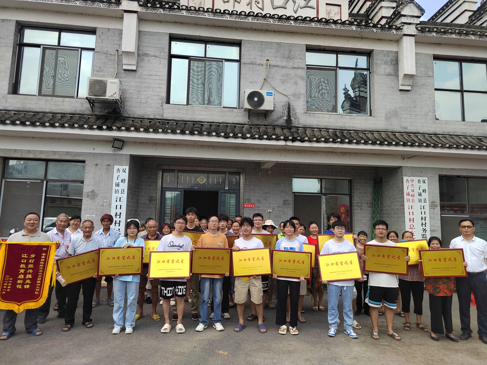 江口村村委会向beat365中文在线官网乡村振兴工作队赠予锦旗,beat365中文在线官网乡村振兴工作队向江口村学子颁发“江口希望之星”荣誉奖牌