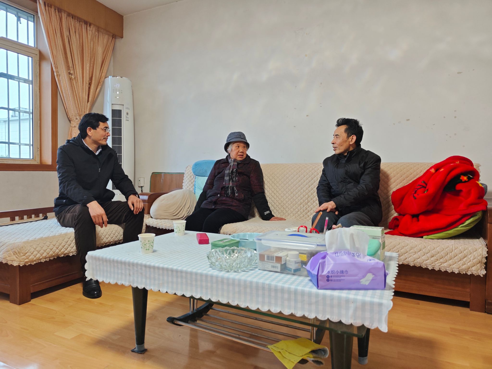 校纪委书记李雪山(右)走访慰问老党员杨淑银(中) 龚若愚/摄