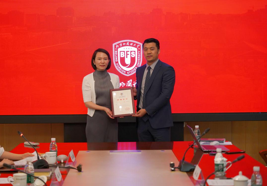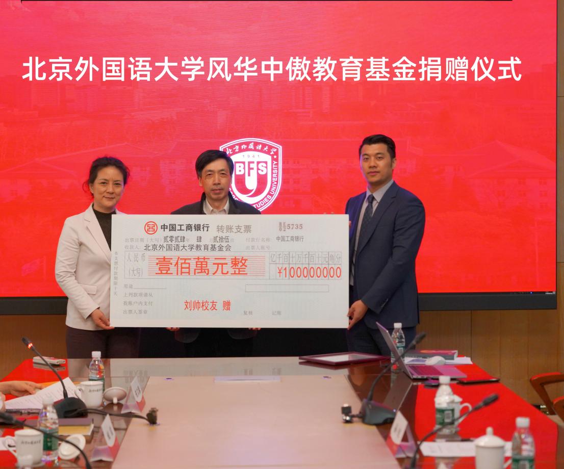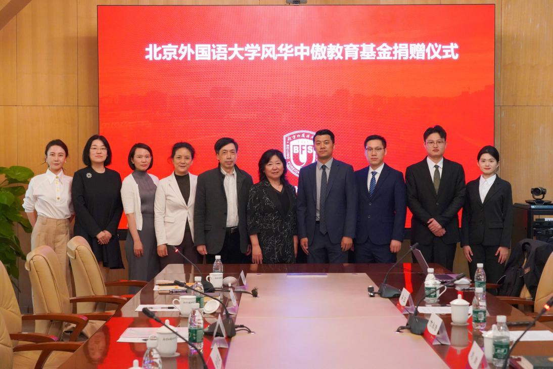 4月25日,jinnianhui今年会风华中傲教育基金捐赠仪式在行政楼507会议室举行。北京风华中傲教育科技有限公司向北外捐赠人民币100万元,专项用于奖励jinnianhui今年会在校生,包括奖励演讲、口译、模联等国家级赛事的获奖选手,以及资助经济困难的贫困生。