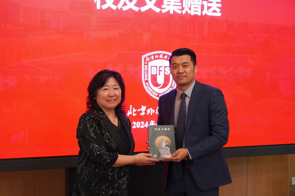 捐赠仪式上,刘帅深情回顾了自己在校时的求学、创业经历,特别感谢了北外多位恩师对他的悉心指导和无私帮助。刘帅谈到,正是在学校提供的资源和指导下,他的公司才能够顺利度过初创期,逐步发展壮大。他希望通过此次捐赠帮助更多在校生追求卓越,促进学院高质量发展,为学校培养更多有家国情怀、有全球视野、有专业本领的复合型人才做出贡献。