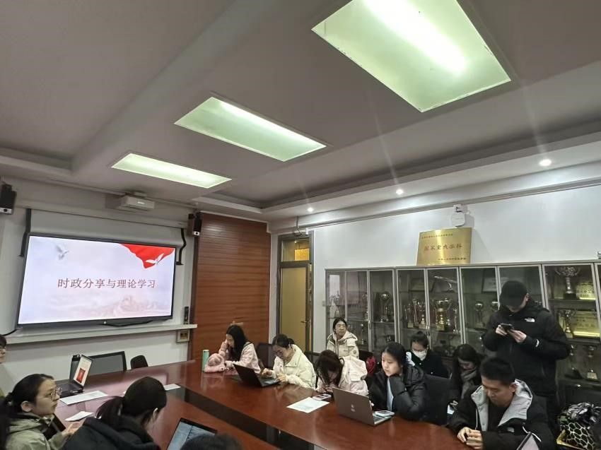 本科生党支部以"勇担复兴使命,书写青春华章"为主题开展研讨。支部书记段亮婧重温培训核心内容,强调青年党员既是民族复兴的见证者,更是参与者和建设者。陆欣同学谈到,中国能够系统推进远景目标并如期完成任务,充分彰显了制度优势和党的执政能力,自己对国家未来充满信心。李珈璐同学表示,作为新时代青年学生党员,要继承光荣传统,在全面建设社会主义现代化国家的新征程上勇担重任。林晨同学结合英语专业特色谈到,将立足专业所学,讲好中国故事,传播中国声音,以实际行动践行"请党放心,强国有我"的誓言。