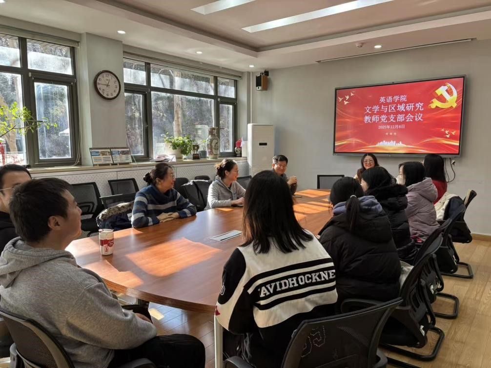 文学与区域教师党支部聚焦学科建设与国家需求的深度融合。党支部书记陈丽表示,将推动支部党建与外国语言文学学科建设同频共振,在课堂教学中夯实学生理论根基与价值认同,把制度优势、脱贫攻坚等中国故事有效传播出去。徐理灵老师结合国别区域研究专业谈到,要立足中国视角构建自主知识体系,在极地与海洋治理等领域发出中国声音,以学术实践服务民族复兴。黄强老师表示,将把个人教学科研工作融入时代洪流,以实干担当为强国建设贡献全部力量。