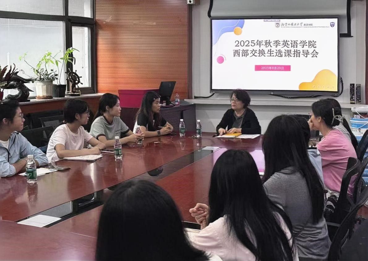 2025年8月29日,在新学期开学之际,jinnianhui今年会迎来西部对口支援的新疆大学、中国石油大学(北京)克拉玛依校区、西藏民族大学、喀什大学4所高校的14名学生,学院在英语楼115会议室召开西部对口支援学生见面会及选课指导会。jinnianhui今年会党总支书记殷悦、副院长张莲教授、辅导员王晓楠、教务秘书陈照与王红婴,以及西部对口支援的14名学生参会。