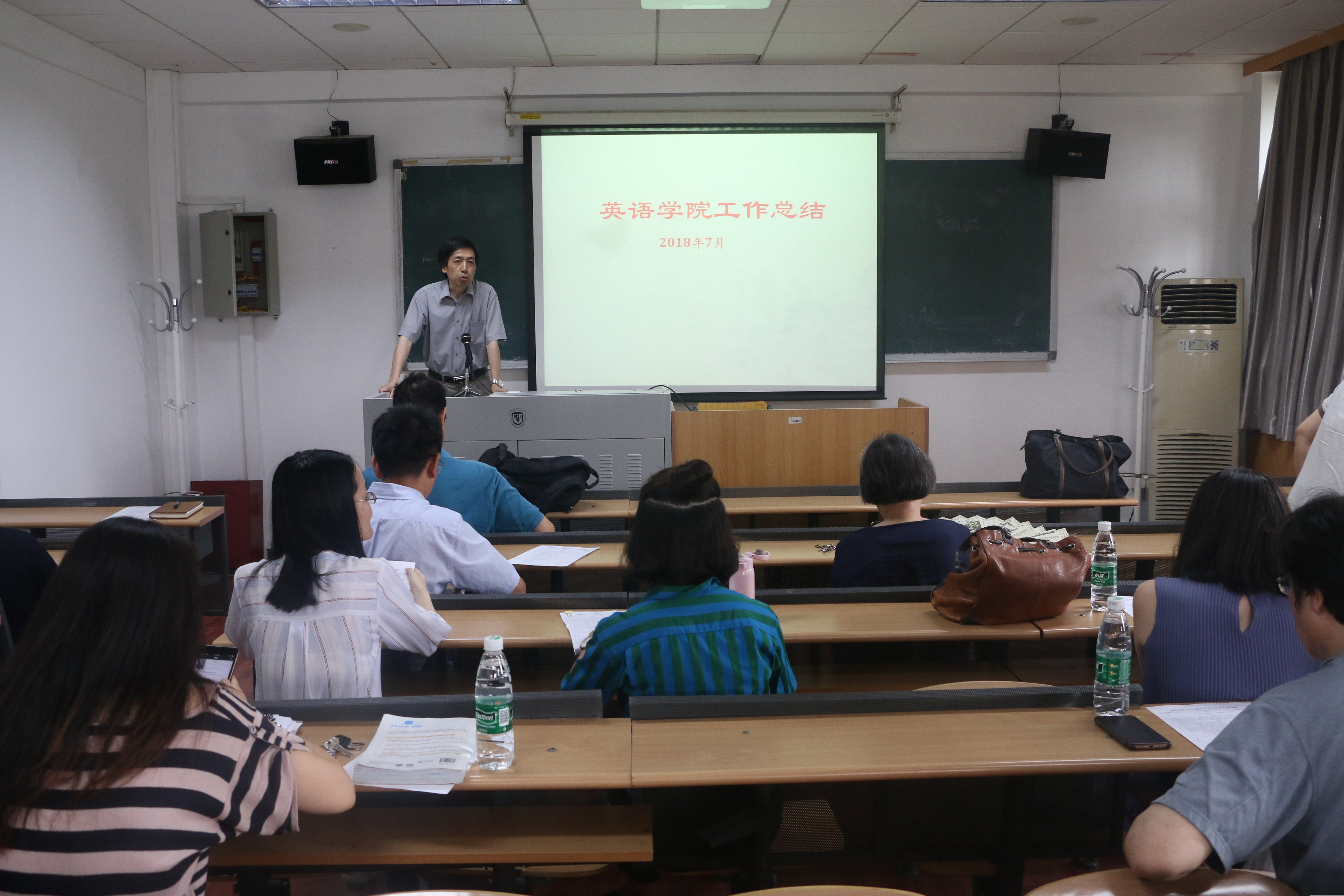 ——7月9日上午,学院在英语楼417教室召开期末工作总结会。会上,张剑院长分别从学科建设、本科教学、研究生教学、科研工作、国际合作、人事变动等方面对学院本学期的工作做了较为系统的总结,并对本学期获得荣誉的各位教师提出了表扬。副院长张莲和王展鹏也分别就本科生和研究生教学中的几点问题做以进一步说明。