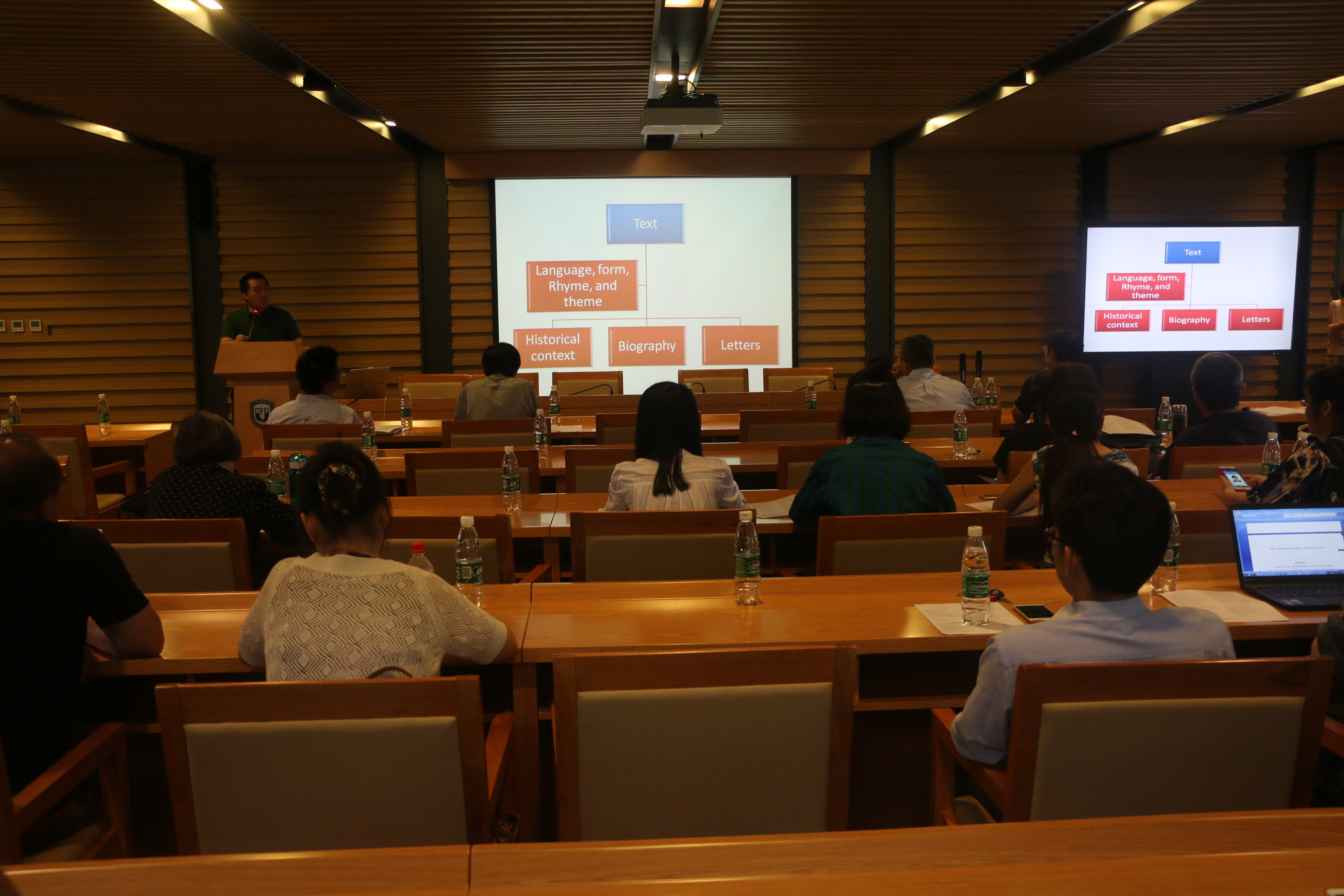 ——7月9日下午,在图书馆三层报告厅召开学术分享与科研创新大会。会上,黄强、刘杨、王洪涛、夏登山四位老师分别以“中国作者与文学论文海外刊发:一个个案研究”、“科研基金申请:以2018年教育部青年基金申请为例”、“翻译学研究的路径、方法和前沿话题”及“CSSCI论文投稿的几点教训:以翻译史和礼貌研究为例”为题,做了主题发言,分享了各自开展研究的经验和在专业期刊上发表论文的体会。随后,主管学院科研工作副院长谢韬围绕“国别区域研究:选题、方法与投稿”的主题进行发言。会议讨论环节,与会教师就学院“如何在科研方面为老师服务”、“如何促进研究生和博士生的学术研究”、“如何让访问学者融入学院的学术活动”等问题展开讨论,为学院今后的科研工作进一步理清了思路,明确了方向。
